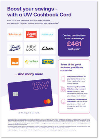 Please note: Cashback retail partners are subject to change and may vary at any time. Please check the UW app for the most up-to-date list of participating retailers, as details may have changed since the time of print.